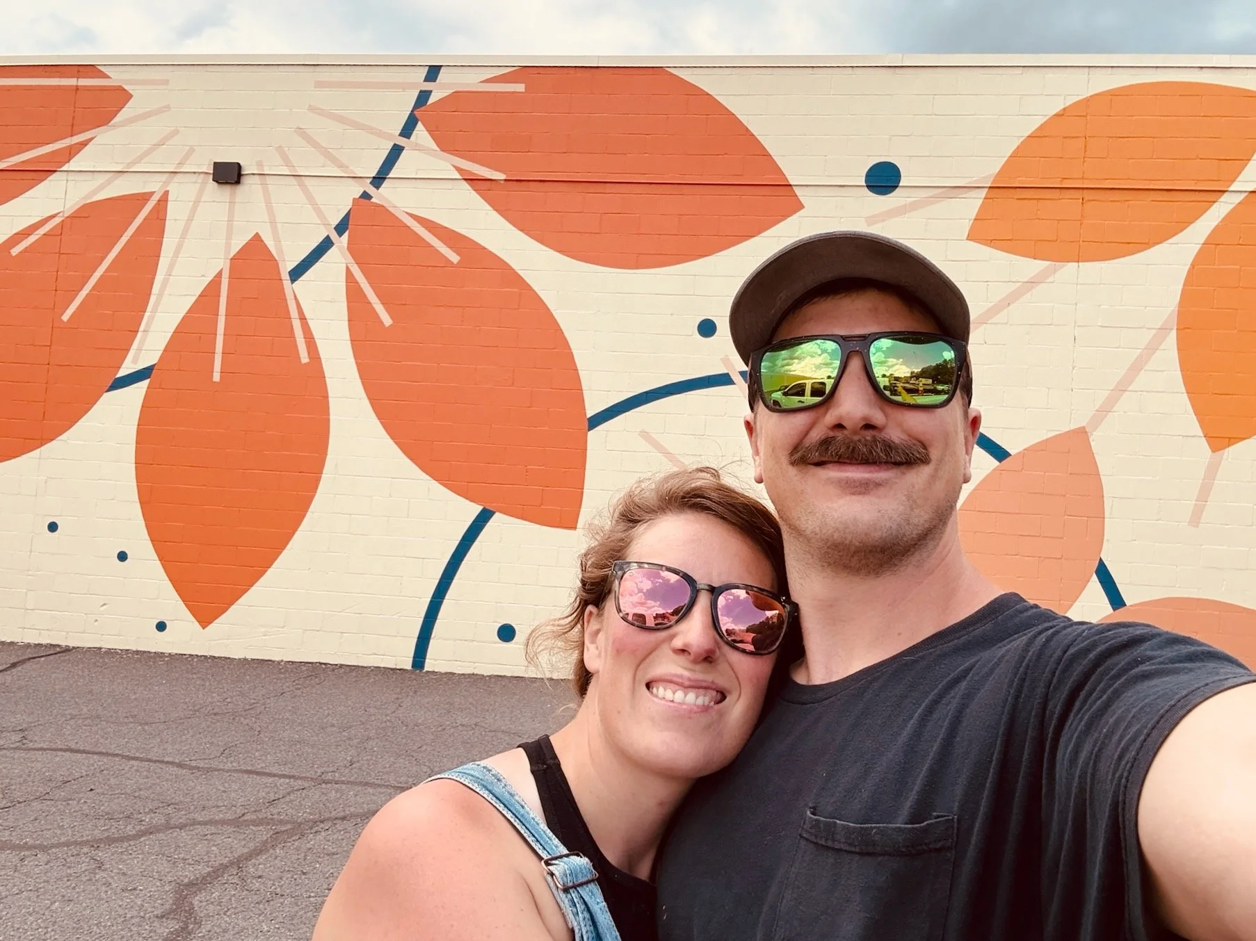 Through my research I found my tribe with the Walldogs, a group of highly skilled sign painters and muralists. In 2018 I was encouraged to pick up a brush and try my hand at the art. It was my moment in which I said, “This is what I need to do. This is what I need to pursue.” In 2019 I took the leap and started Human Made Signs & Murals. Fast forward to February 2022 when I met my now husband, Tyler, who over the next three years supported me with the business until he also made the leap and left his career to join Human Made Signs & Murals as our project and sales manager, and also as a Walldog.